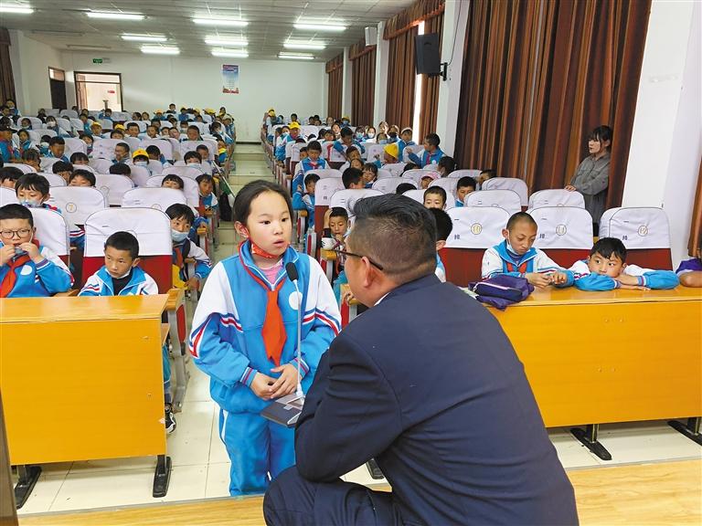 图为山南市人民检察院检察官在山南市第一小学开展法律知识宣讲,并与学生互动交流。本报记者 巴桑旺姆 摄