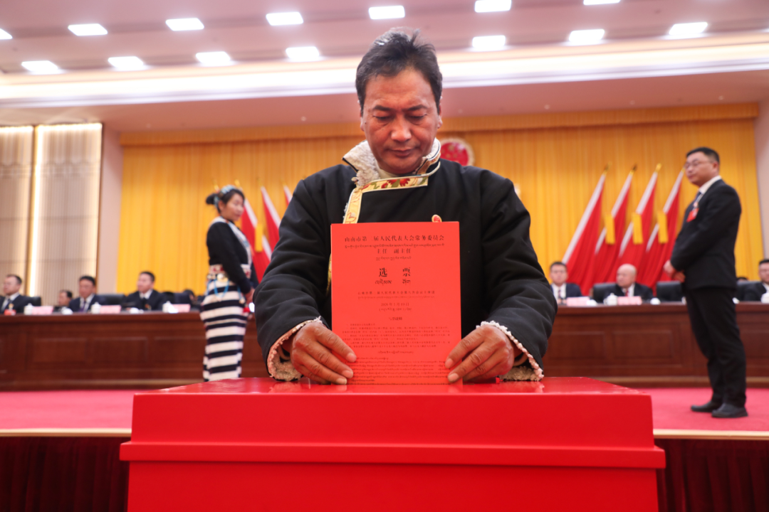 大会首先表决通过了《山南市第二届人民代表大会第九次会议选举办法》和《山南市第二届人民代表大会第九次会议总监票人、监票人名单》。