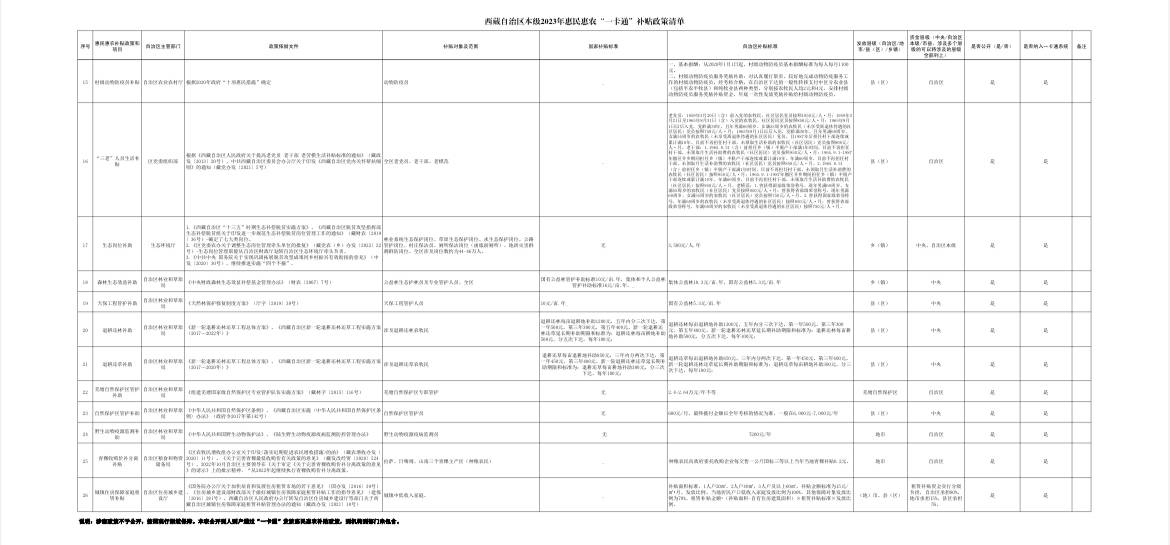 西藏自治区本级2023年惠民惠农“一卡通”补贴政策清单