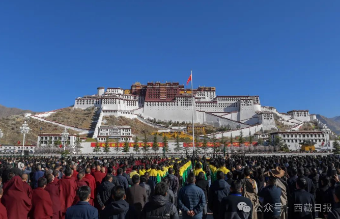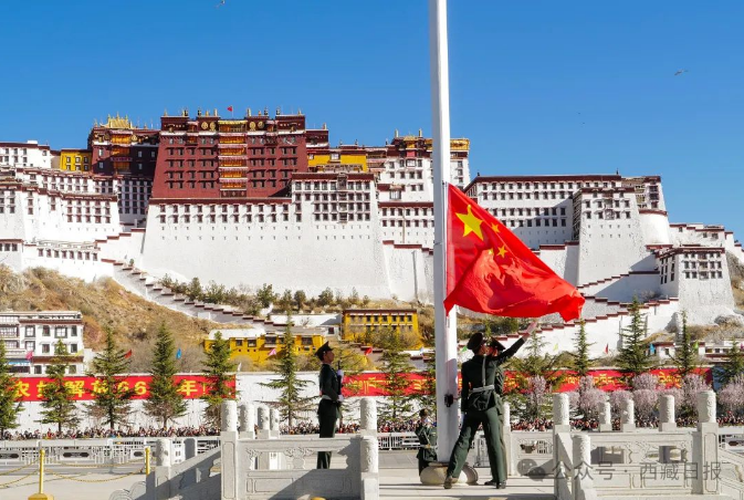 今天上午,西藏百万农奴解放纪念日“升国旗·唱国歌”仪式,在拉萨布达拉宫广场举行。