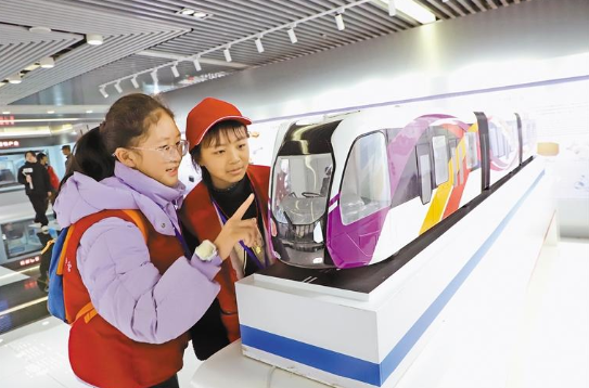 图为山南、湘潭两地学生在中车株洲所参观智轨列车(无人驾驶公交电车)模型。图/文 西藏日报记者 武沛涛 西藏日报通讯员 颜慧林 李胜财